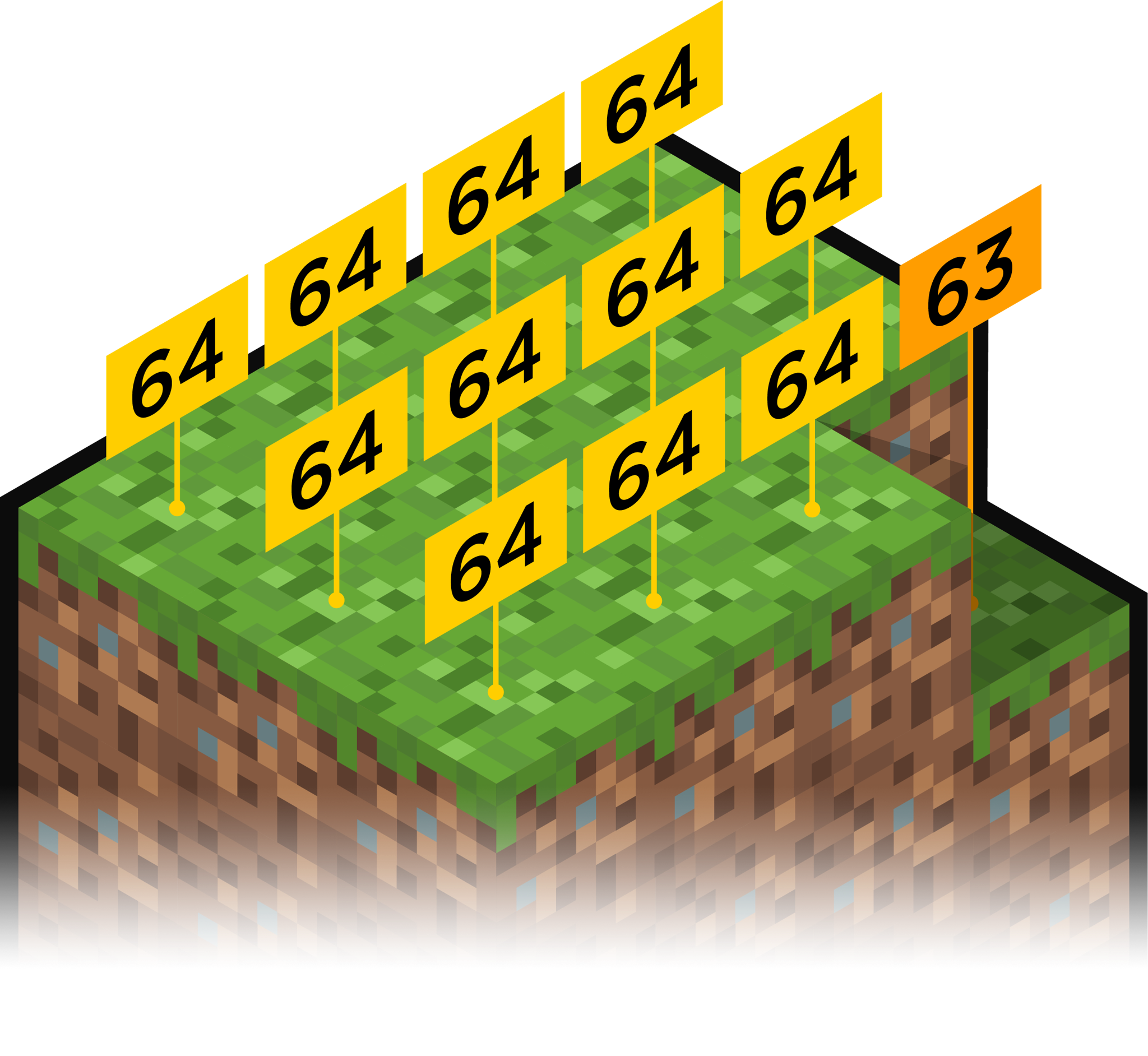 인벤토리가 비어 있기 때문에, 맨 오른쪽 아래를 제외한 모든 좌표에서 블록을 하나씩 제거해야 한다.